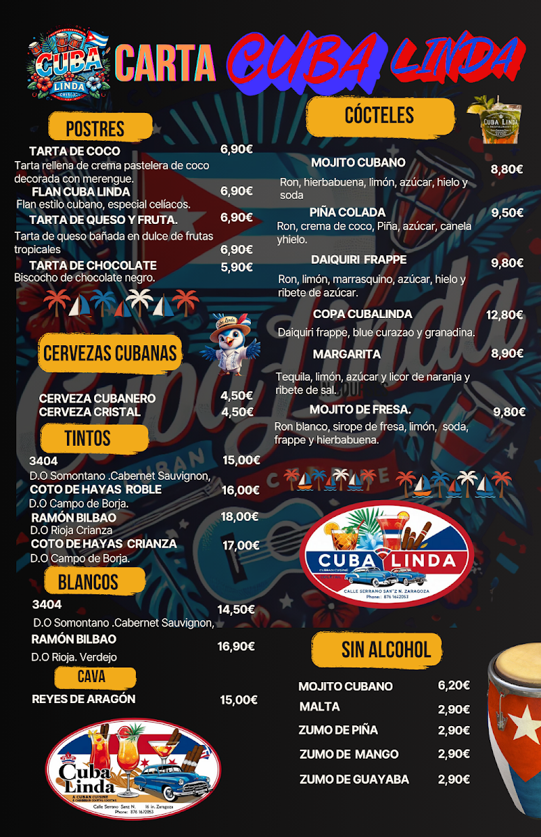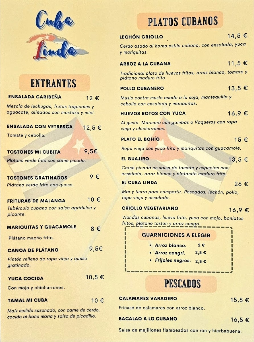Welcome to Cuba Linda Restaurante Cubano, a vibrant culinary haven located in the heart of Zaragoza, Spain. This Cuban gem offers an enticing menu that captures the rich flavors of Caribbean cuisine. Start your meal with delightful Entrantes such as the Ensalada Caribeña, a refreshing mix of greens, avocado, and tropical fruits dressed in honey mustard for €13.90, or savor the Tamal Mi Cuba, a spicy corn dish topped with succulent roasted pork for €12.90.